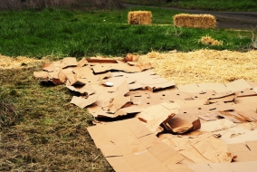 Récupérez des cartons bruns d'emballage, retirez-en scotch et agrafes, puis étalez-les directement sur la zone à cultiver. Ils empêcheront les herbes de passer à travers tout en attirant les lombrics, très friands de la cellulose qui les compose.
