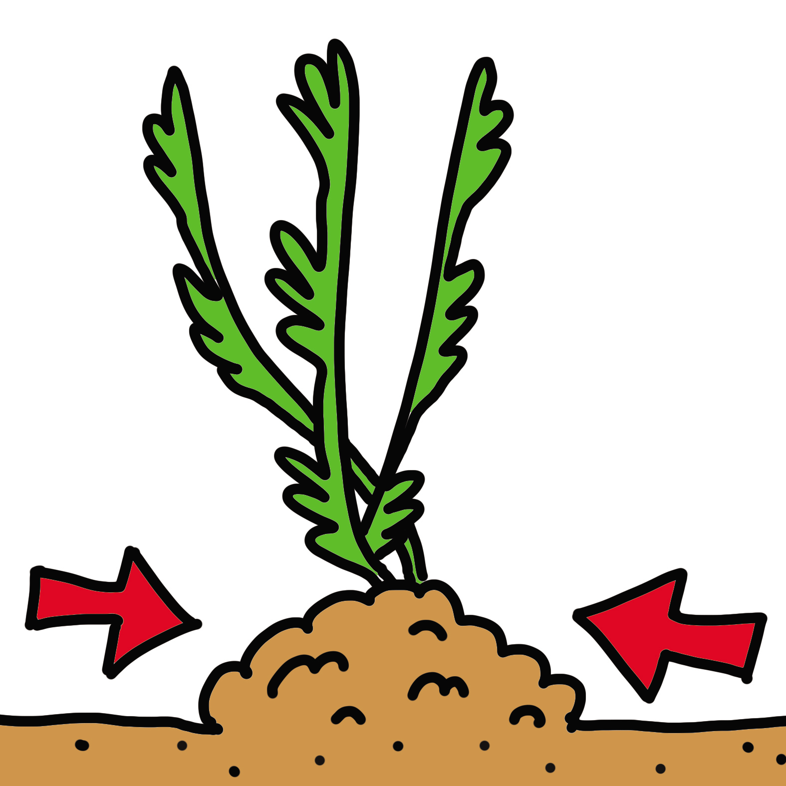 Ramenez la terre autour du pied d'artichaut sur une épaisseur d'environ 10 centimètres. Cette butte forme la première barrière protectrice à la base de la plante. Veillez à ne jamais recouvrir le cœur central pour éviter tout risque de pourriture.