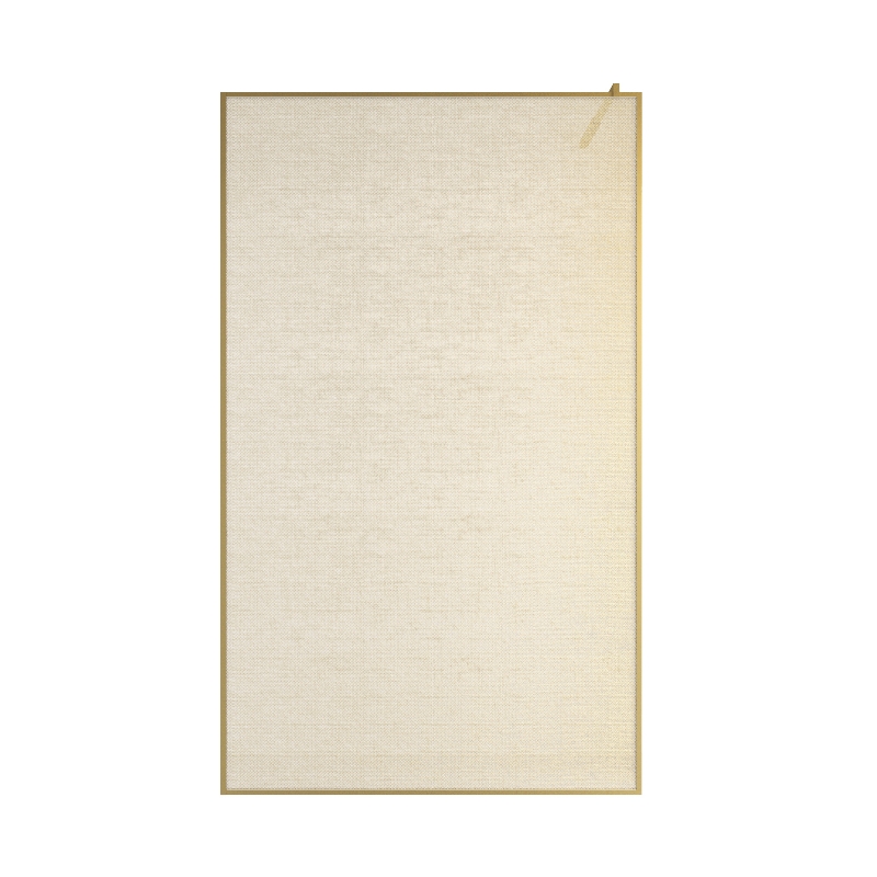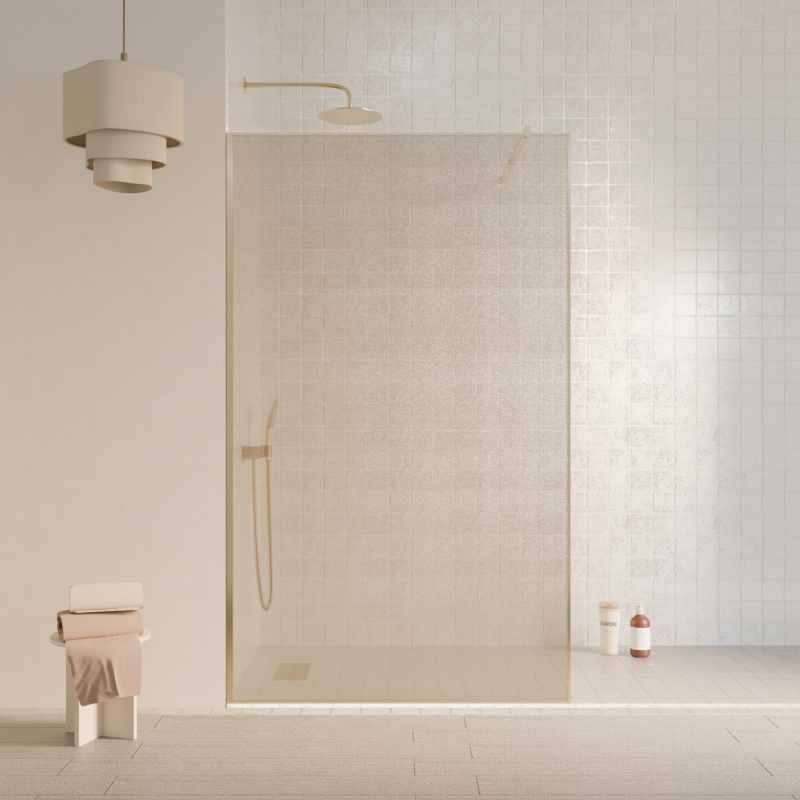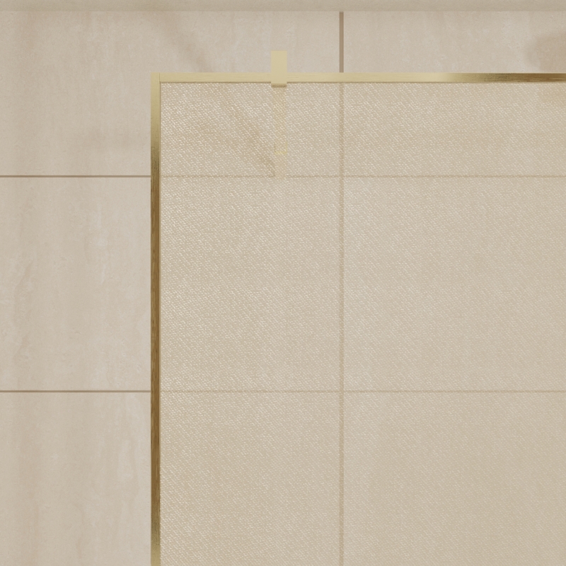 Inspirée de l'univers de la haute couture, cette paroi de douche invite le textile à redonner du lustre à cet élément incontournable de la salle d'eau. Encapsulé entre deux plaques étanches, le tissu doré apporte de jolis jeux de lumière, transformant la paroi en véritable objet déco. Un raffinement qui ne sacrifie cependant rien à la fonctionnalité puisque cet équipement est conçu en verre trempé laminé de 8 mm (4 mm + 4 mm), lui assurant résistance et sécurité, et repose sur une structure en aluminium or brossé aussi stable que durable. Son profilé mural ajustable, son bras de maintien extensible et son installation réversible permettent en outre de l'adapter à différentes configurations de salle de bains. Pour parfaire l'esthétique de la pièce, on peut l'associer à une robinetterie dorée ou à d'autres accessoires sophistiqués, comme du linge de bain moelleux ou des distributeurs de savon chromés.
