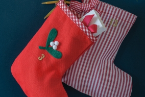 Retournez votre botte sur l'endroit. Vous pouvez maintenant coudre un biais sur le rebord ainsi qu'une attache. Enfin, décorez votre bottillon comme vous le souhaitez : empiècement de feutrine en forme de houx ou de gui, pompons, grelots… et pourquoi pas broder chaque jour du calendrier ?