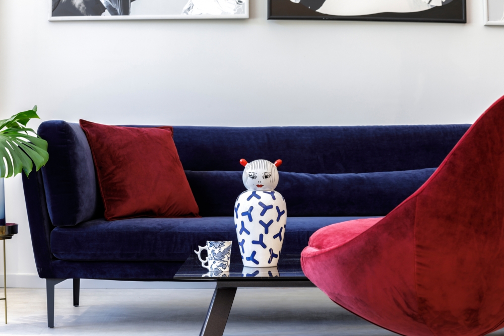 Une céramique chinée sur un vide-grenier, un tapis tufté aux accents kitsch, du mobilier sculptural, des textiles bariolés ou encore un luminaire imposant et coloré, pour éclairer un intérieur aux tons neutres… Une foule d'éléments peuvent se prêter au jeu. Trouvez celui qui vous fait sourire ou titille votre curiosité, et amusez-vous à créer un contraste avec le reste de la pièce. Les objets à valeur sentimentale ont également toute leur place : songez, par exemple, à disposer en évidence un bibelot désuet de votre grand-mère ou à encadrer un dessin d'enfant à la manière d'une œuvre d'art !