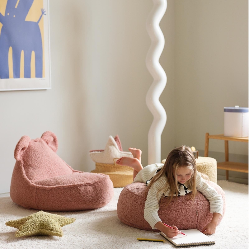 Que ces derniers crapahutent encore à quatre pattes ou qu'ils laissent simplement libre cours à leur imagination en jouant au sol, l'installation d'un grand tapis moelleux et de coussins est idéale pour rendre l'espace de jeu des bambins plus confortable. Le confort de la pièce tient aussi dans son adaptation à leurs besoins, notamment du côté du mobilier : on songe aux étagères et tiroirs placés à hauteur de leurs menottes, aux coffres et boîtes de rangements dont les couvercles sont pratiques à ouvrir – et à refermer, sinon, gare aux doigts ! –, aux veilleuses et lampes aux tons doux, faciles à allumer en cas de frayeur nocturne… Ce dernier élément peut en outre participer à l'instauration d'un rituel de coucher apaisant, particulièrement important chez les plus jeunes.
