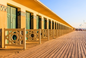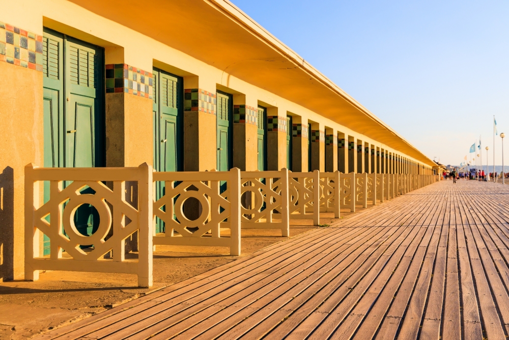 En fin de journée, arpentez la plage de Deauville, célèbre pour sa promenade des Planches. Parée de parasols colorés plantés dans le sable, elle séduira n'importe quel voyageur grâce à ses centaines de cabines de plage aux influences Art déco, séparées par des barrières en bois portant chacune le nom d'un acteur, venu à l'occasion du Festival du cinéma américain.