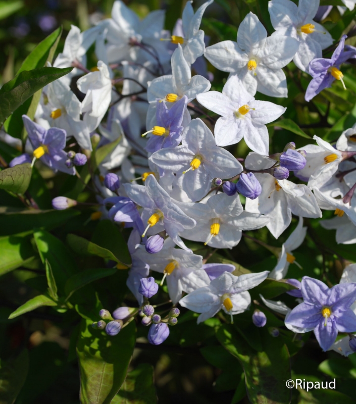 Solanum laxum, H : 60 / 100 cm, 16 € sur ripaudpepinieres.com. Tel : 02 51 69 64 08.