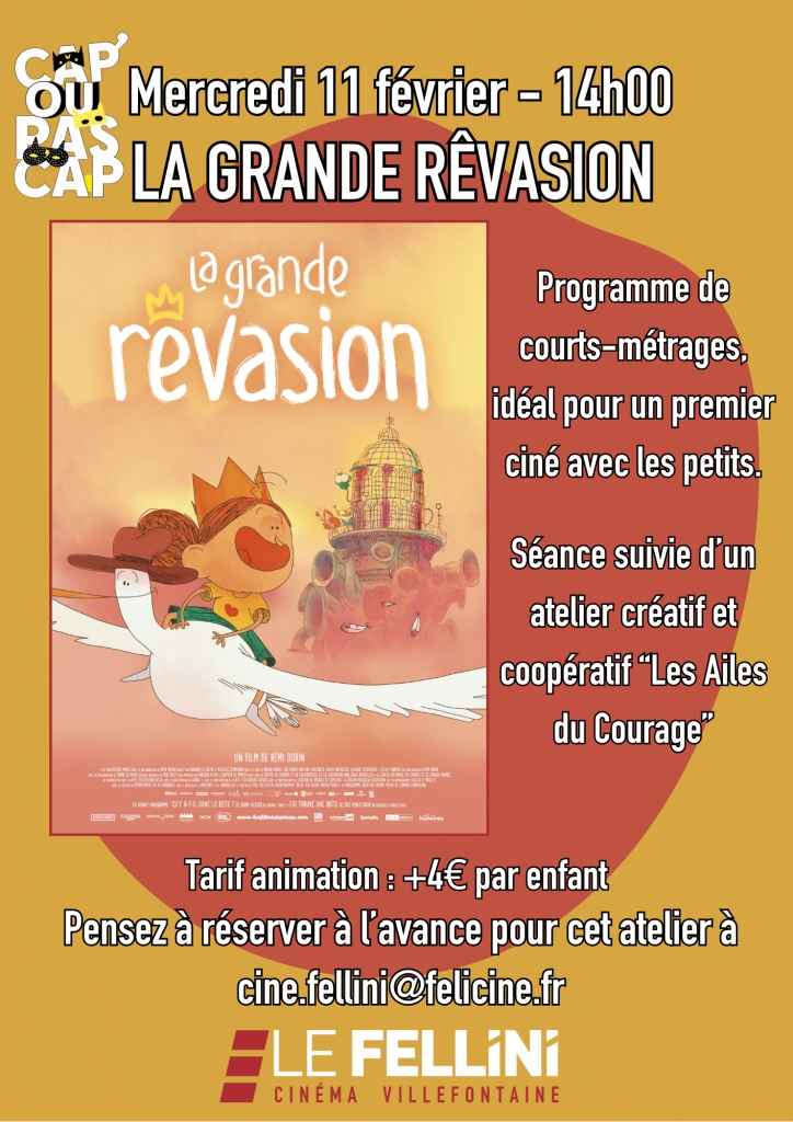 Dans le cadre du festival Cap Ou Pas Cap, votre cinéma Le Fellini organise un ciné-atelier autour du film La Grande Rêvasion mercredi 11 février dès 14h.