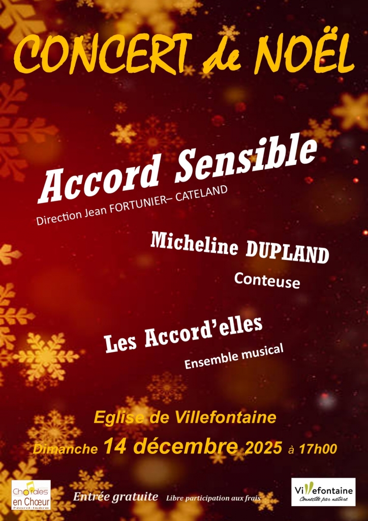 Chant choral par l'ensemble vocal Accord Sensible, Musique par Les Accord'elles, Contes de Noël par Micheline Dupland, Chants de Noël avec le public