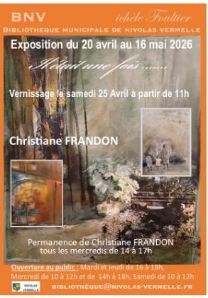 Christiane Frandon expose ses dernières œuvres à la bibliothèque de Nivolas-Vermelle. A découvrir du 20 Avril au 16 Mai.