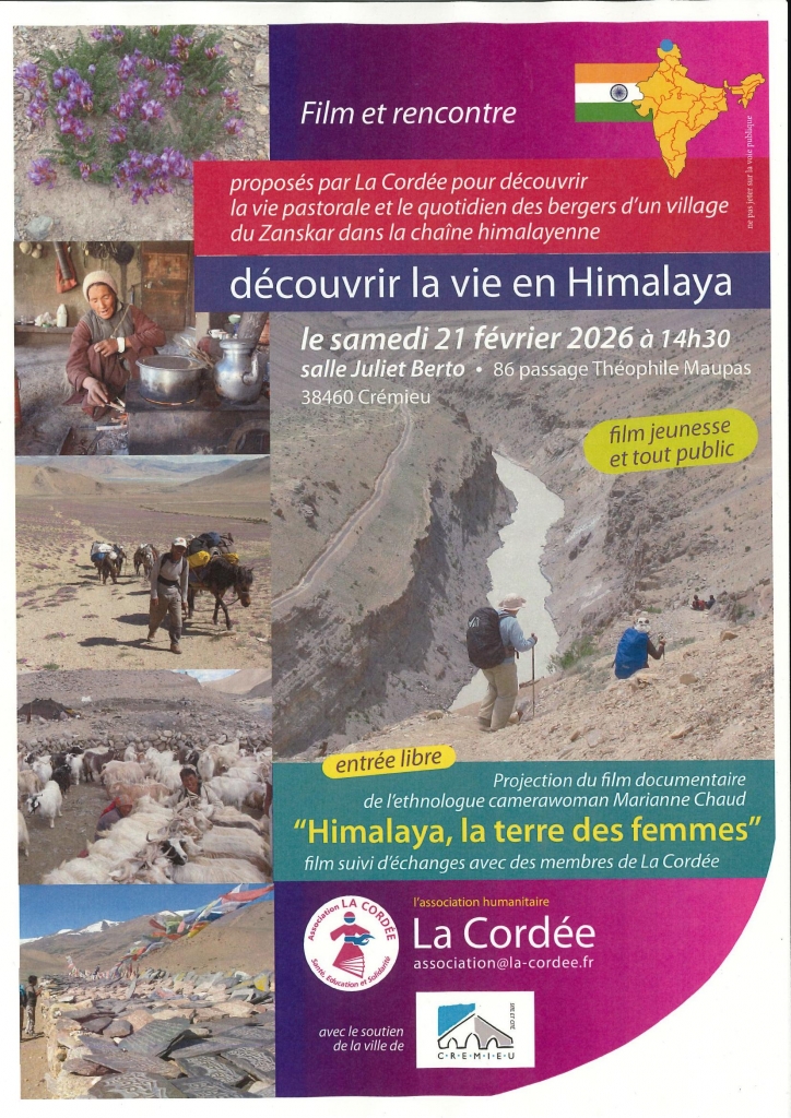 L'association humanitaire La Cordée organise cette projection et rencontre d'un documentaire réalisé par l'ethnologue Marianne Chaud pour découvrir la vie pastorale et le quotidien des bergers d'un village du Zanskar dans la chaîne himalayenne.