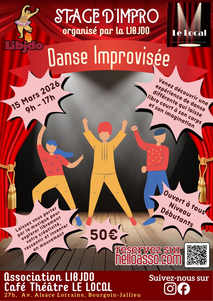 La danse improvisée c’est tout simplement la transposition du théâtre d’improvisation en danse !