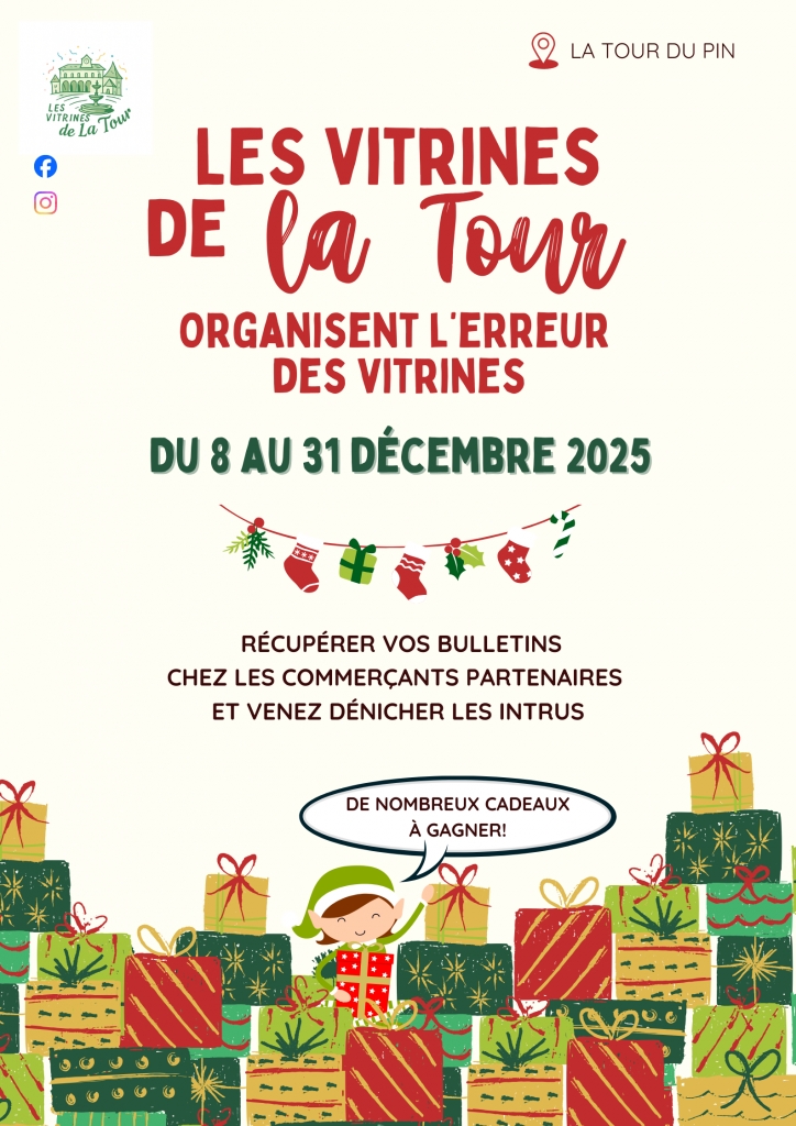 Les Vitrines de la Tour organisent "l'erreur des vitrines" Récupérez vos bulletins chez nos commerçants partenaires et venez dénicher les intrus. De nombreux cadeaux à gagner !!!