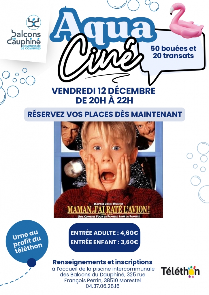 Dans le cadre du Téléthon à Morestel, une soirée ciné à la piscine est proposée avec la projection du film "Maman, j'ai raté l'avion", incontournable comédie familiale... A (re)voir en flottant sur l'une des 50 bouées géantes ou 20 transats disponibles.