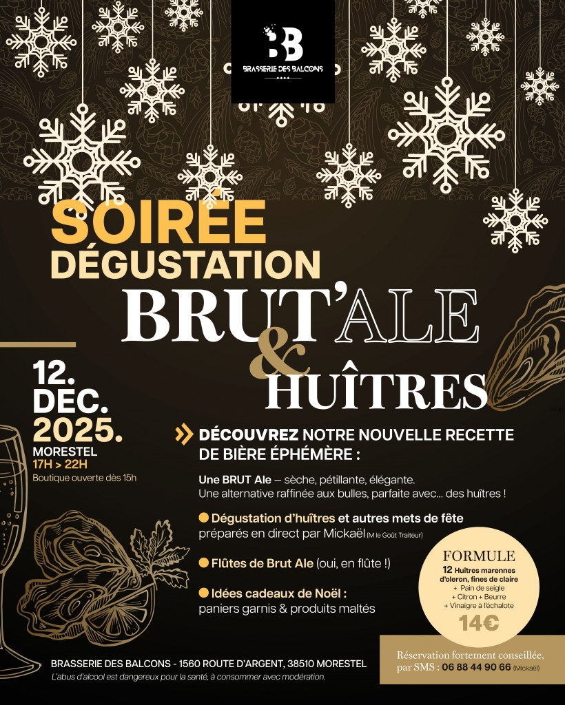 Soirée dégustation Brut'Ale et huîtres à la Brasserie des Balcons