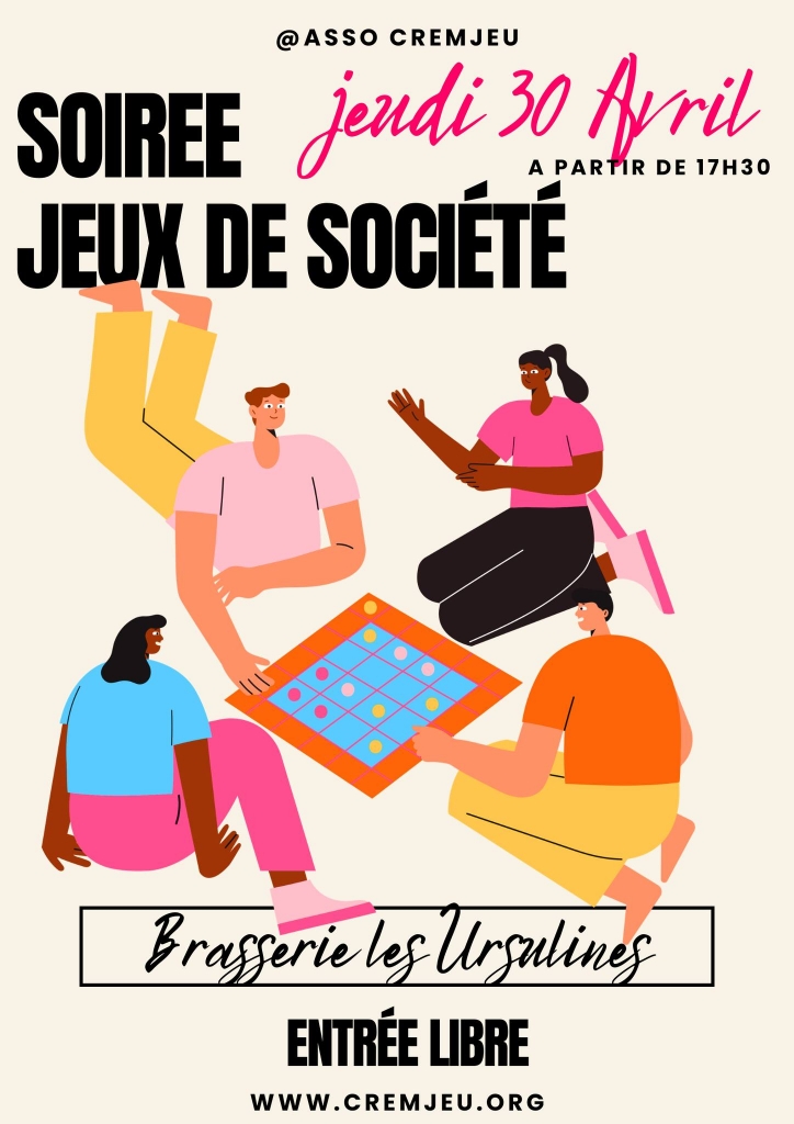 Soirée jeux de société et apéro avec l'association Cremjeu à la Brasserie Les Ursulines