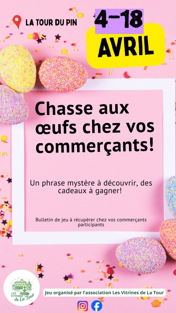 Chasse aux œufs chez vos commerçants : une phrase mystère à découvrir, des cadeaux à gagner. Bulletin de jeu à récupérer dans les magasins participants.