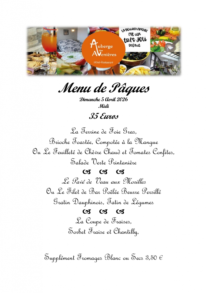 Menu de Pâques au restaurant l'Auberge des Avenières