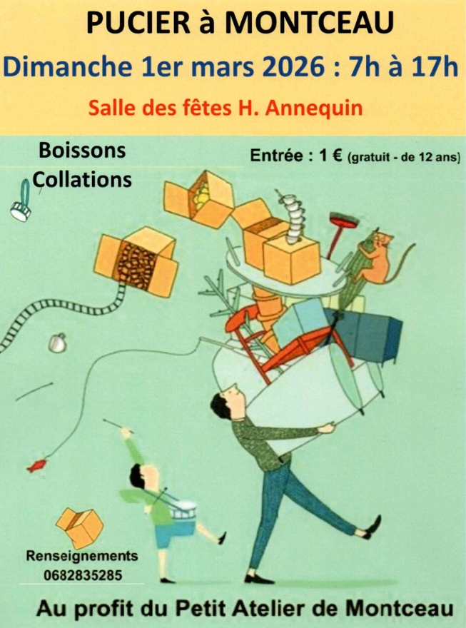 Le petit atelier de Montceau organise son pucier annuel, accompagné d'une exposition de peinture. Buvette et petite restauration sur place.