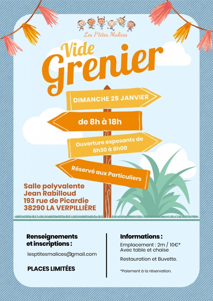 L’association Les p'tites MAlices organise son vide grenier annuel dimanche 25 janvier à la salle polyvalente Jean Rabilloud de La Verpillière.