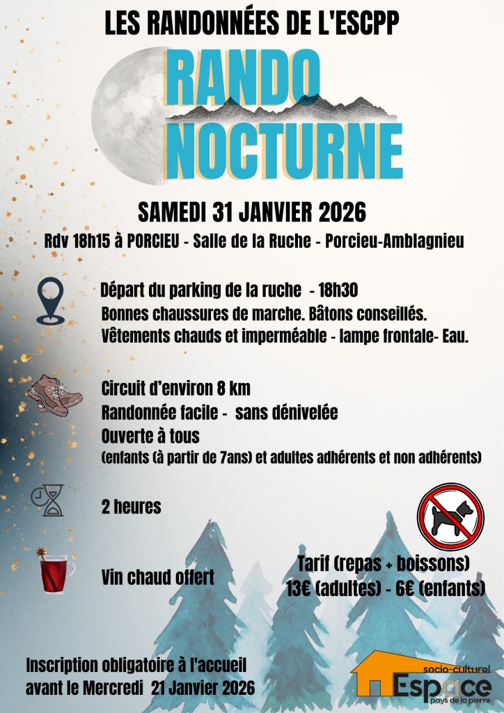 L’Espace socio-culturel du Pays de la Pierre de Montalieu-Vercieu vous invite à participer à une randonnée nocturne.