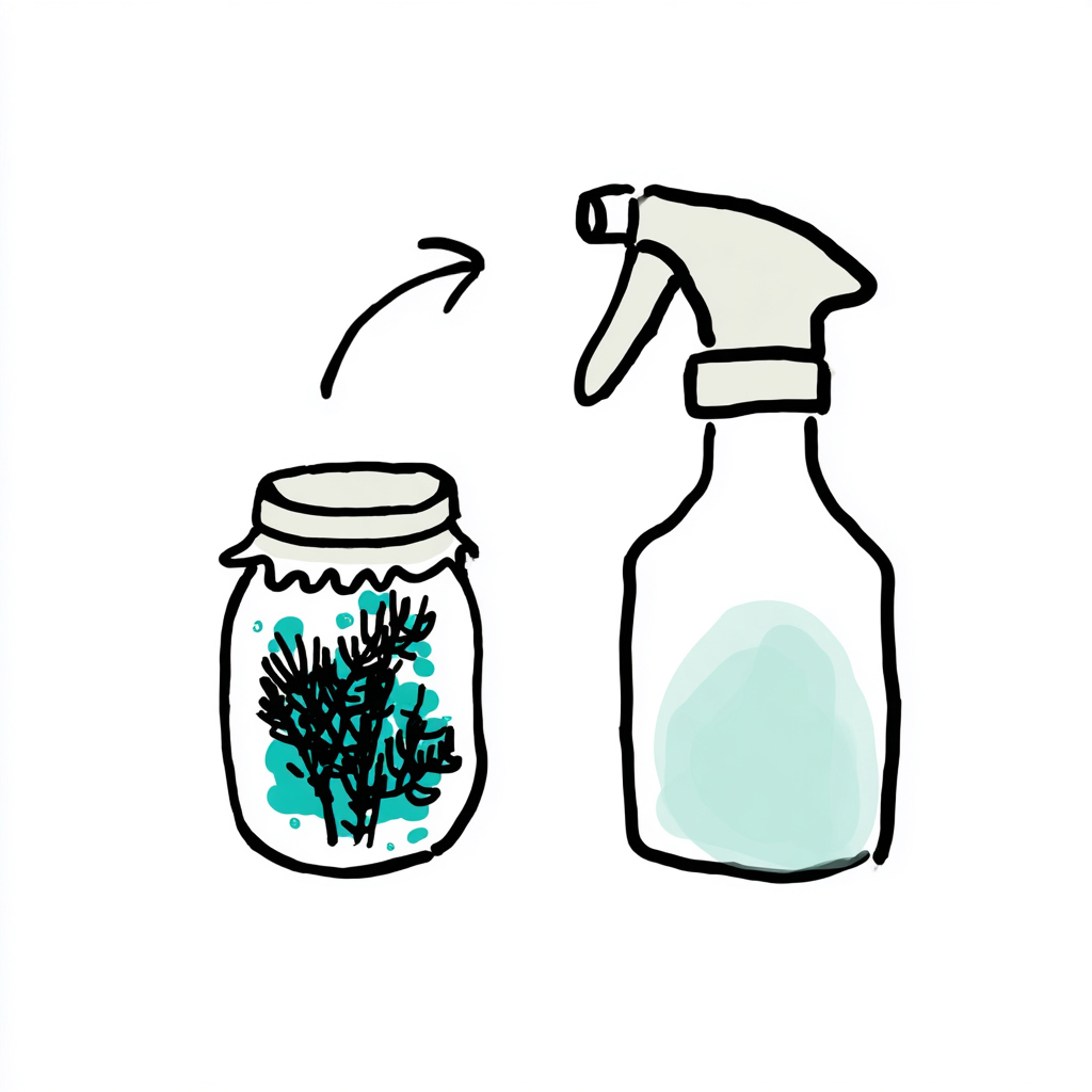 Placez une poignée de branches encore bien vertes dans un bocal, recouvrez de vinaigre blanc puis fermez. Laissez macérer minimum deux semaines avant de filtrer et de transvaser le tout dans un spray en ajoutant un peu d'eau.
