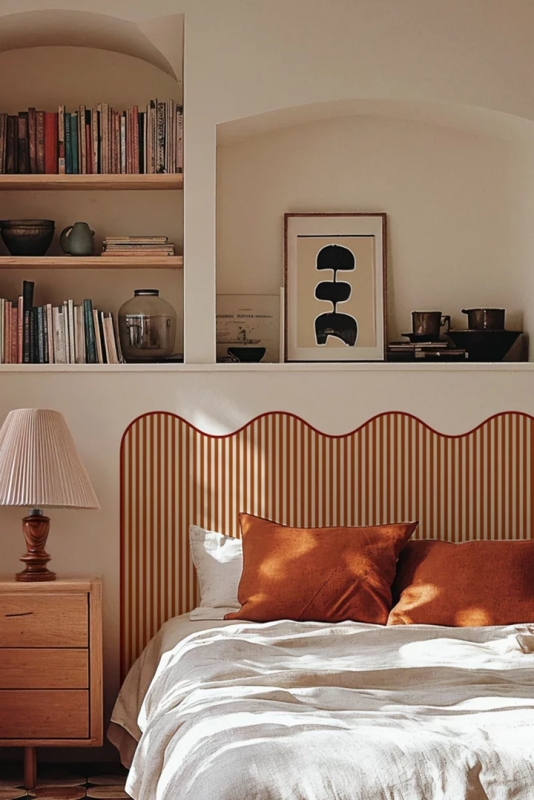 Prenez trois tendances fortes du moment, à savoir la tête de lit colorée, les rayures et les festons. Vous obtenez ce rouleau adhésif prêt à poser et une preuve de plus, s'il en fallait, que le papier peint est désormais tout sauf vieillot. Offrant une alternative maison aux têtes de lit classiques – mais bien plus simple à réaliser qu'une peinture à main levée –, ce modèle se pose en une dizaine de minutes. Le travail est en effet largement facilité par le pré-encollage et le pré-découpage, puisqu'il suffit d'un spray d'eau au dos pour réactiver la colle intégrée, d'un soupçon de marouflage… et c'est terminé ! Modulable en hauteur, disponible en plusieurs largeurs et trois coloris (brun, rouille et olive), cette décoration est également résistante à la lumière et confectionnée à partir de papier intissé épais certifié FSC.