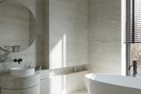 Véritable travail de Sisyphe (on exagère à peine), le nettoyage des joints d'une salle de bains est une tâche perpétuelle. À moins que ces derniers ne s'effacent ingénieusement, dans une salle d'eau plus moderne et bien plus apaisante…