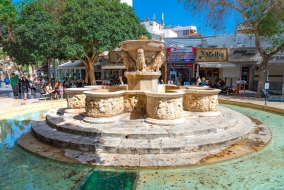 À partir de ce lieu, prenez la rue 1 866 pour découvrir le célèbre marché permanent où vous trouverez des épices, des encas gourmands mais aussi des fleurs. Flânez ensuite dans la rue perpendiculaire et commerçante Odos Daidalou, pour finir vos emplettes. À quelques mètres, la loggia vénitienne vous tend les bras. Construite par Francesco Morosini, le même qui conçut la fontaine aux lions, cet édifice accueillait la noblesse vénitienne pour des réunions mais aussi en tant que lieu de divertissement. Enfin, à deux pas, descendez vers le port grâce à la rue piétonne Odos 25 Avgoustou.