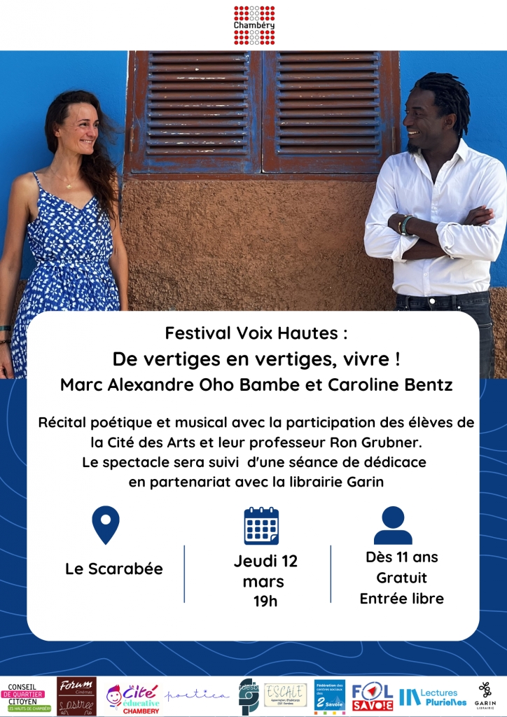 Avec Marc Alexandre Oho Bambé et la pianiste Caroline Bentz, avec la participation des élèves de la Cité des Arts et leur professeur Ron Grubner dans le cadre du festival Voix Hautes.