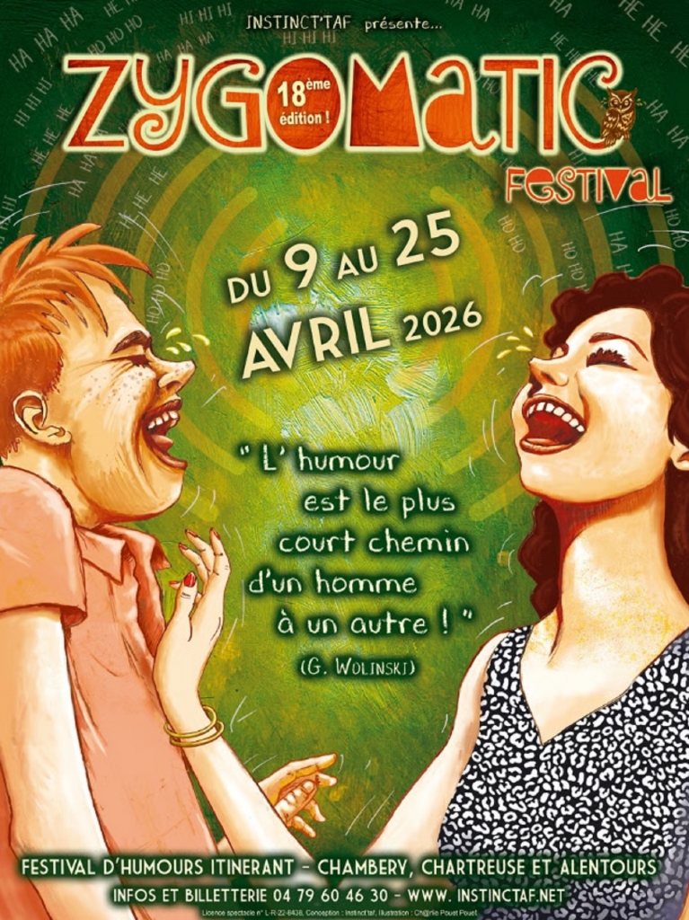 Le Zygomatic Festival est un festival d’humour qui anime Chambéry et le Massif de Chartreuse. One-man show, théâtre, mime, musique et jeux de mots : une programmation variée pour découvrir des artistes drôles et créatifs dans une ambiance conviviale.