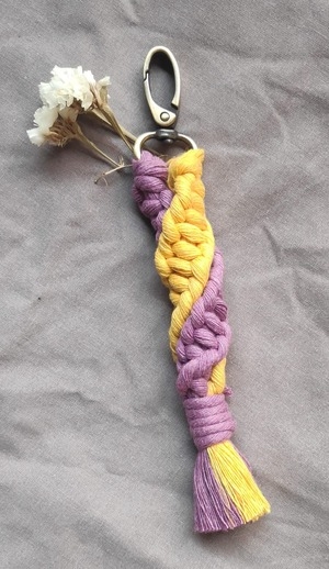 Ensuite, une fois les nœuds maîtrisés, vous réaliserez votre porte-clés. Vous vous émerveillerez en voyant votre création prendre forme nœud après nœud. Et vous étonnerez de la patience que vous développez et de l'état méditatif dans lequel le macramé peut vous plonger.