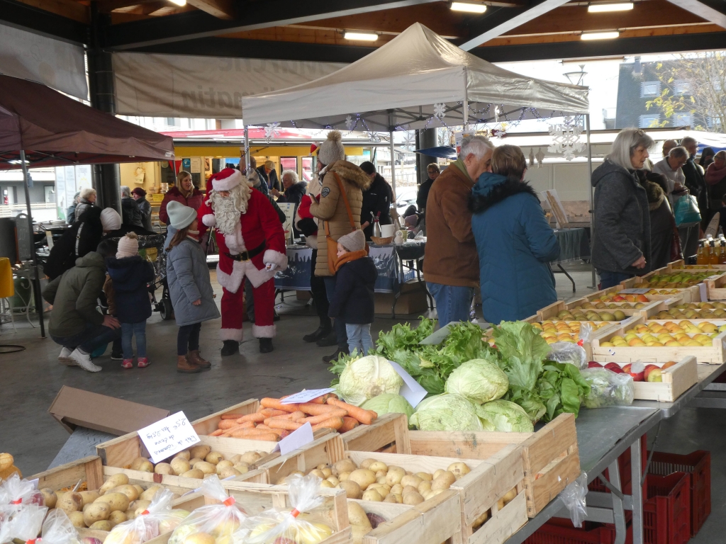 Le Père Noël viendra saluer les commerçants et les enfants sur le marché et sur la place du commerce : Distribution de clémentines et de papillotes.