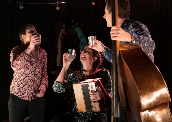 Trio flûte traversière, accordéon diatonique et contrebasse, interprétant de la musique de bals « trads » et des compositions, les Lointains sont cette année en création de leur premier spectacle autour des souvenirs de bals : « Ils dansaient là ».