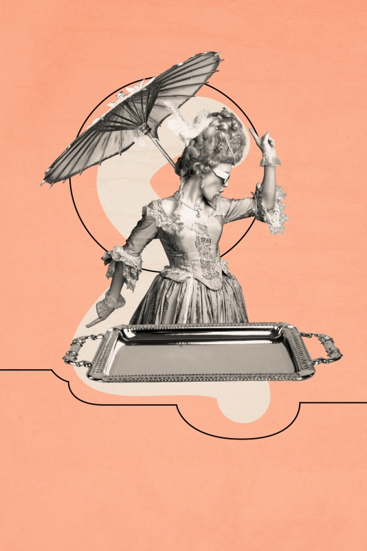 L'étiquette désigne les nombreux codes tacites qui régissent les comportements en société. Mais qui les dicte ? Ne nous leurrons pas, la plupart viennent d'en haut : des mondanités de la haute bourgeoisie ou, plus loin encore, de l'aristocratie, dès l'époque du Roi Soleil. Et bien qu'il soit désormais rare que l'on s'offusque si le pain est coupé au couteau, il reste de bon ton de connaître certaines règles selon les tables auxquelles on est convié...