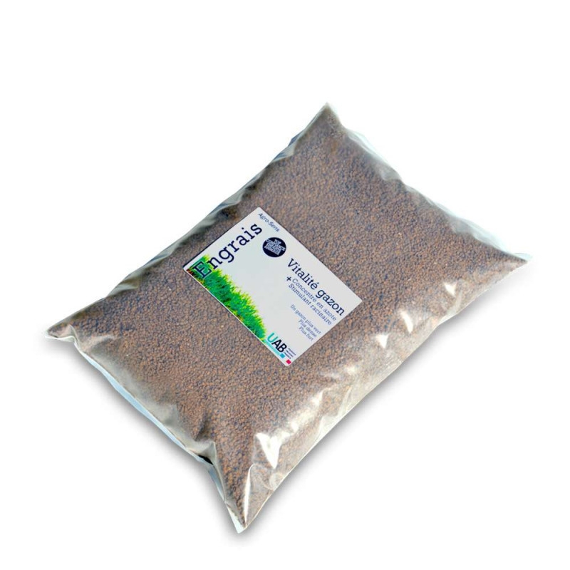 En octobre, il est encore temps d'apporter à votre pelouse quelques minéraux qui favoriseront son enracinement avant l'hiver. Les gazons abîmés par les sécheresses estivales apprécieront ! La terre est encore chaude et permet l'assimilation des éléments nutritifs de fond, tels que l'azote (5 %), le phosphore (1 %) et surtout le potassium (12 %). Ce petit coup de boost est davantage favorable au développement racinaire qu'à la croissance du feuillage. Sa formule longue durée, uniquement à base d'éléments organiques (fumier, compost, vinasse de betterave…) assure une nutrition équilibrée et biologique jusqu'au printemps. Sa composition granulée requiert un simple épandage sans griffage, les pluies assurant naturellement la dissolution des minéraux dans le sol. Dosage : 1 kg / 25 m².