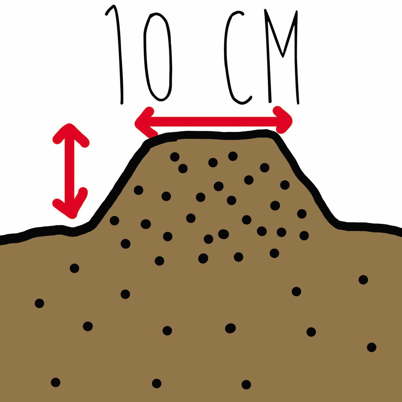 En terre argileuse, il est important de positionner les lignes de plantation sur des petites buttes de terre d'environ 10 cm de haut et 20 cm de large qui maintiendront vos caïeux au-dessus de l'humidité stagnante.