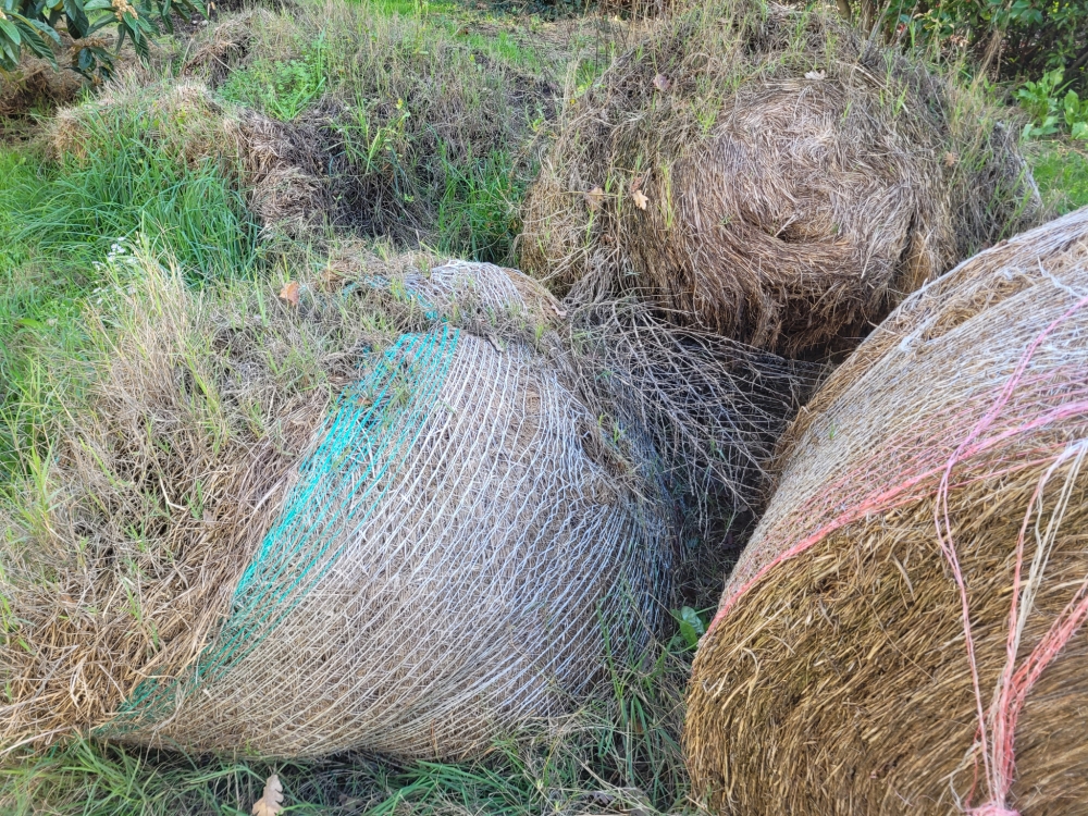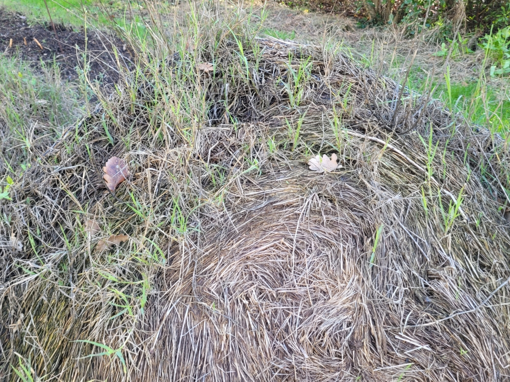 Mais faites attention à l'endroit où vous allez les stocker ! Chiendent et liseron, s'ils sont présents en surface du sol, profitent de l'obscurité et de l'humidité douillettes du tas ou des bottes pour s'y propager, y étendre leurs longues tiges et racines, et coloniser progressivement le paillis stocké en quelques semaines.