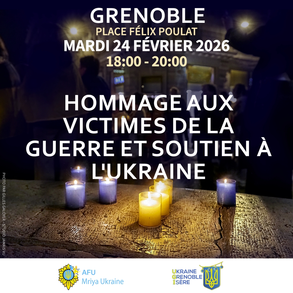 L'AFU Mriya Ukraine et l'association Ukraine-Grenoble-Isère organisent un temps de mobilisation en hommage aux victimes de la guerre et en soutien au peuple ukrainien.