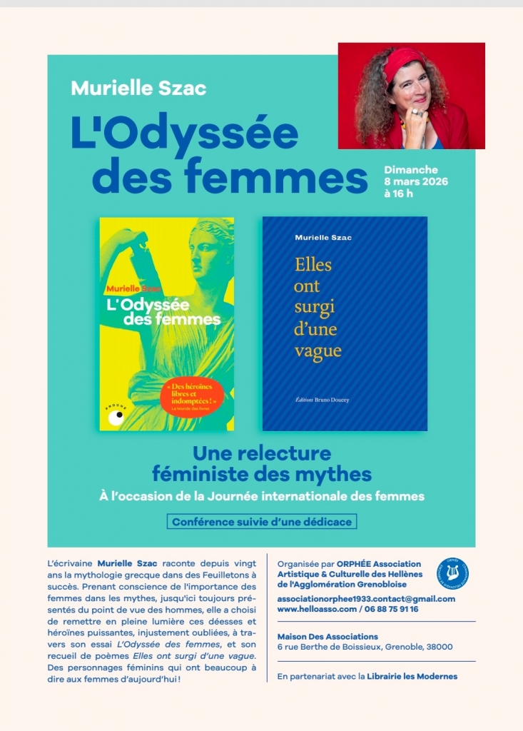C'est avec un immense plaisir que l'association ORPHEE vous invite à l'événement exceptionnel L'ODYSSEE DES FEMMES par Murielle SZAC à l'occasion de la Journée internationale des femmes "Une relecture féministe des mythes