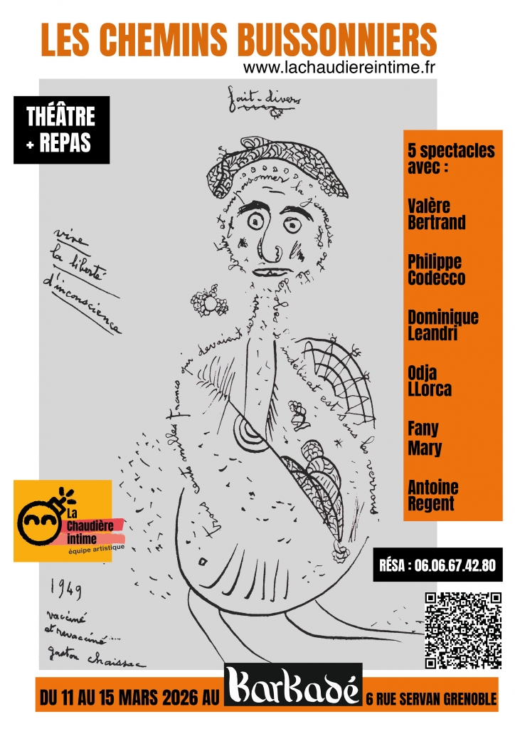 La compagnie de théâtre la Chaudière intime vous invite au Karkadé pour 5 jours de spectacles. Au programme : de mercredi à samedi, 2 spectacles par soir (19h et 21h30), avec repas (20h); dimanche spectacle familial à 15h.