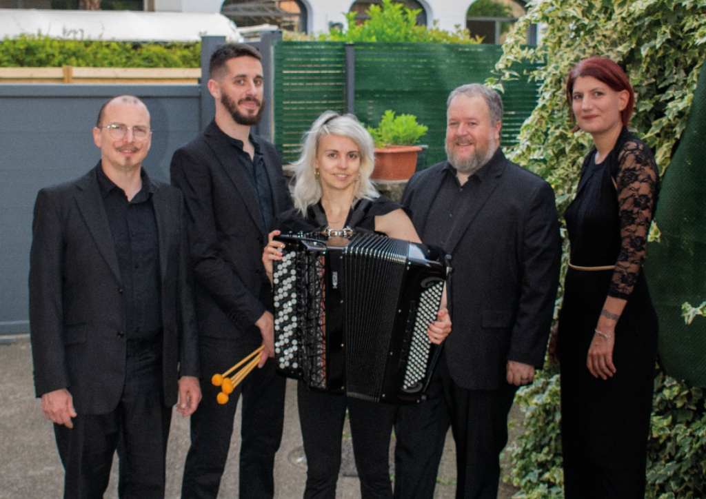 Ensemble Kaïnos : François Hollemaert, ténor | Louis Quiles, marimba | Lisa Heute, accordéon et chorale | Jean-Christophe Dantras-Henry, ténor | Hélène Caffi, mezzo-soprano | Ensemble Tenete dirigé par Anne Laffilhe