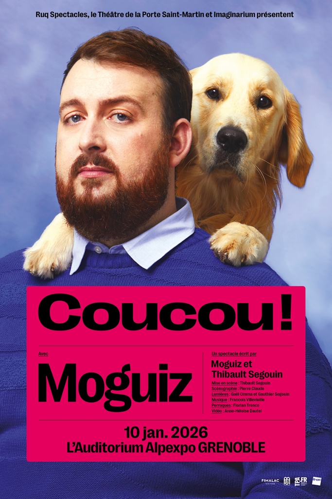 "Coucou", un spectacle drôle et décalé de Moguiz, vous attend à l’Auditorium - Alpexpo de Grenoble. Avec son talent unique pour incarner des personnages hauts en couleur, Moguiz fait rire chaque jour des milliers de fans en ligne... et bientôt en salle !