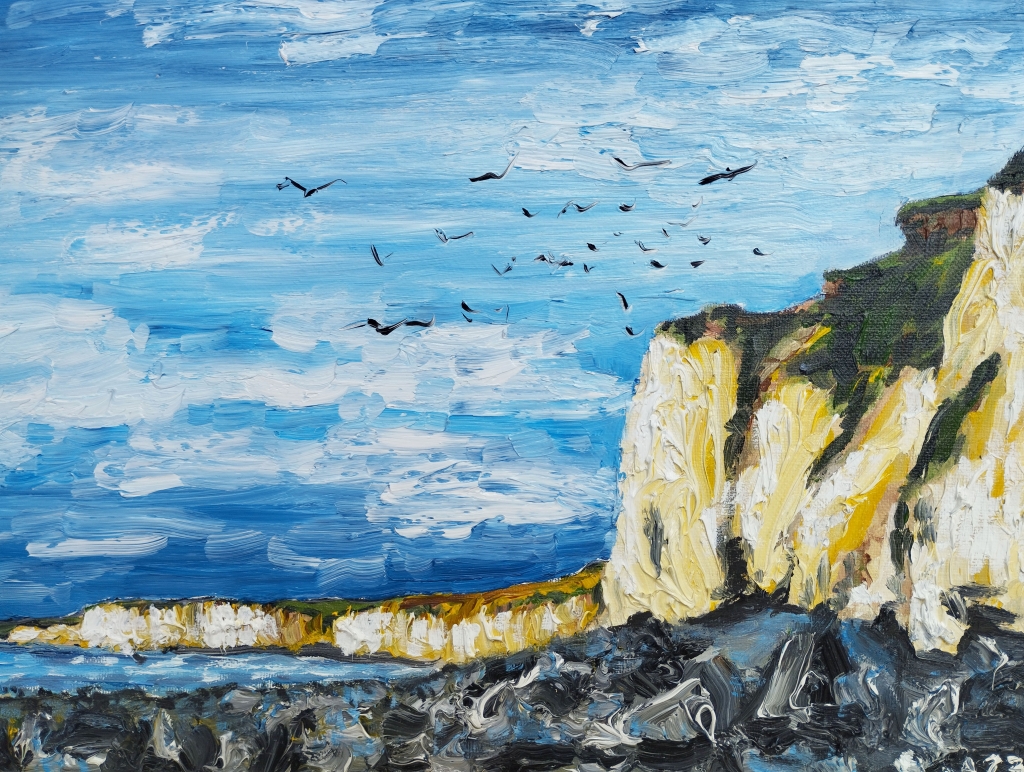 Peindre la mer qui s’arrête au pied des hautes falaises de la côte d’Albâtre ou l’authentique chalet d’alpage du Glarnerland n’a pas pour but de produire une image pittoresque, mais parle simplement du désir du peintre de vouloir retrouver le lien avec ses racines. Tenter de saisir le mariage heureux du rouge et du vert qui borde le lac du Salagou ou bien encore parcourir les chemins de campagne du Dauphiné à la rencontre de son patrimoine, parlent ici de ses attaches nouvelles. Ce sont quatre lieux de forte identité, aux paysages contrastés, que le peintre propose de faire parler. »