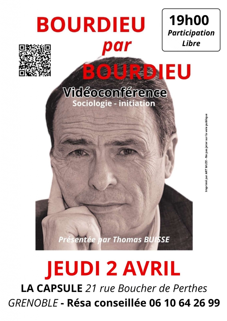 Vidéoconférence sur la sociologie et les concepts de Pierre Bourdieu présentée par T. Buisse. Cette initiation s'adresse aux non spécialistes. A partir de 16 ans.