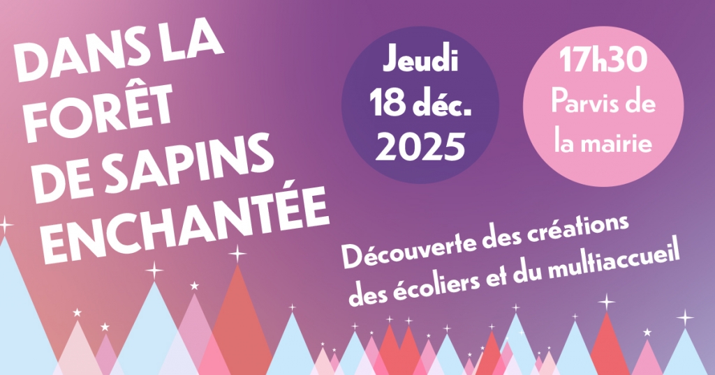 Venez découvrir le travail des enfants et vivre l’esprit de Noël le jeudi 18 décembre à 17h30 sur le parvis de l’hôtel de ville pour la cette nouvelle édition de l'événement communal "Dans la forêt de sapins enchantée".
