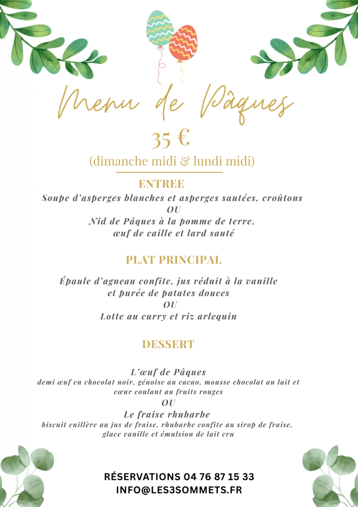 Les 3 Sommets - Restaurant vous propose le menu spécial de Pâques.
