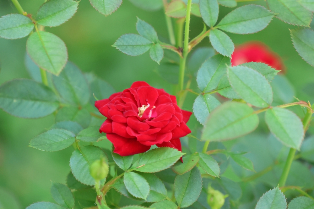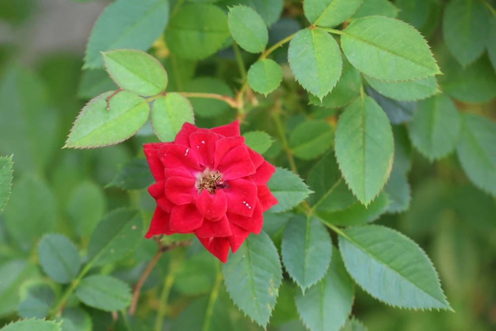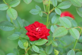 Le Rosa Chinensis « Sanguinea » ou rosier du Bengale sanguin, est une espèce de rosier botanique, c'est-à-dire sauvage. Il présente une caractéristique assez rare pour un rosier : jusqu'à -12 °C, son feuillage reste persistant tout l'hiver. C'est là un élément fondamental pour former une haie occultante. Mais ce n'est pas tout ! Une fois adulte, la plante plafonne à deux mètres cinquante de hauteur, ce qui évite les tailles répétées et fastidieuses.