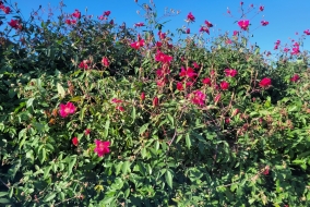 Une haie fleurie sans entretien grâce au Rosa Chinensis « Sanguinea »