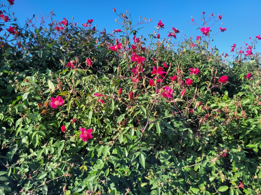 Difficile de croire qu'il est possible de former des haies fleuries brise-vue sans entretien, avec une espèce de rosier botanique à feuillage persistant. Un grand rosier à feuillage persistant ? Noooon ? Si !