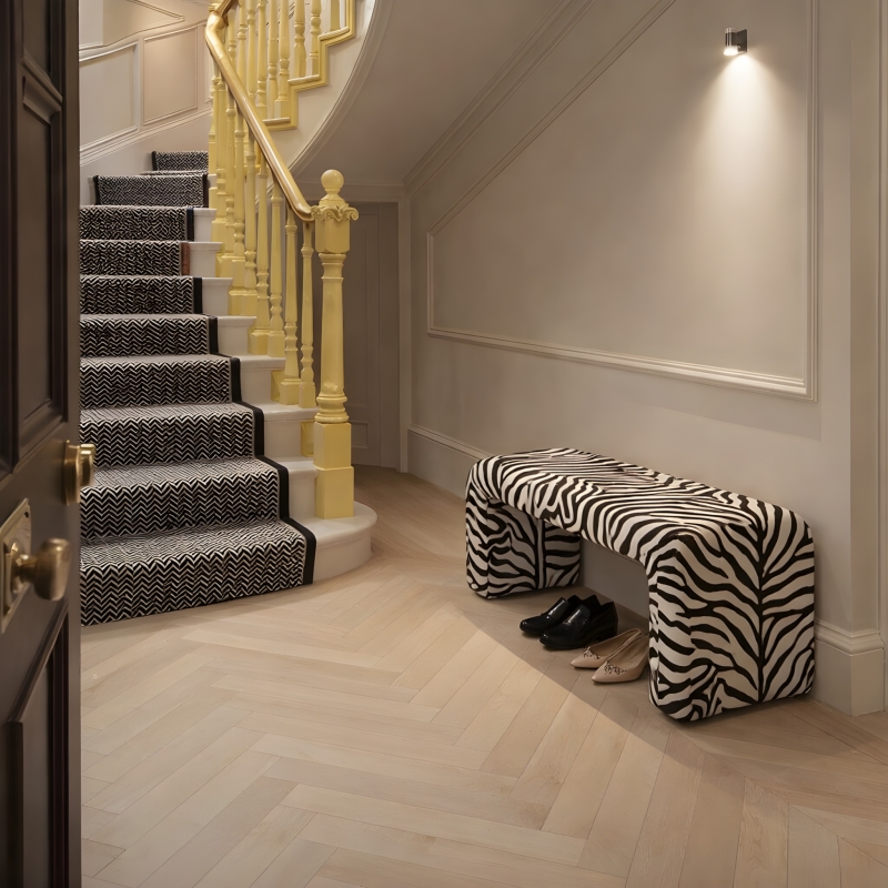 Le motif zèbre se démarque parmi les nouveaux venus. C'est notamment dû à son fort potentiel à contraster avec le reste de la décoration, le combo noir et blanc étant aussi élégant que facile à marier. Sur un tapis XXL, des coussins ou même un canapé, l'imprimé matche bien avec d'autres éléments en vogue comme le verre trempé et le métal chromé pour un effet pointu. De manière plus classique, les nuances et matières naturelles (jute, raphia, bois, etc.) le flattent également.