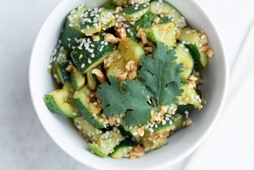 Amoureux des salades estivales, ce paragraphe est fait pour vous ! En plus d'être constitué à 96 % d'eau, le concombre se marie avec tout ou presque. C'est pourquoi vous vous régalerez en dégustant une salade de concombres à la crème fraîche et aux oignons rouges, à moins que vous préfériez le trio concombres-quinoa-ciboulette. Celles et ceux qui raffolent des recettes sucrées-salées opteront pour une salade composée de concombres, feta, grenade et saumon fumé. Enfin, les végétariens ne seront pas en reste et craqueront pour la façon thaïlandaise, constituée de notre fameuse cucurbitacée, d'oignons rouges, de cacahuètes grillées, de mangue, d'une pincée de coriandre et de piments rouges.