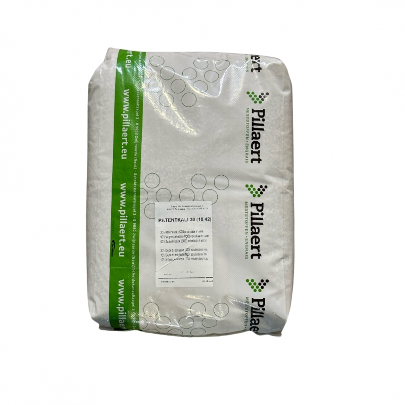 Le patentkali® est un engrais haut de gamme, extrait de gisements de sel brut souterrain en Allemagne. C'est un des engrais minéraux naturels parmi les plus riches en potasse qui soit (30 %). Il contient en outre une forte teneur en magnésium (10 %) et en soufre (42 %). Présenté sous la forme de granulés, il est entièrement soluble dans l'eau. Il faut donc l'employer prioritairement pendant ou légèrement avant la période de végétation pour une assimilation immédiate et ainsi limiter les risques de lessivage. Le magnésium et le soufre sont bénéfiques sur le rendement et la qualité sans accroître la salinité des sols. Quant à la potasse, elle soutient la croissance et la maturation des fruits, et participe grandement à la concentration des sucres et des saveurs. Le patentkali® permet de couvrir les besoins en potassium, en magnésium et en soufre des végétaux les plus exigeants. Dosage : 4 kg/ 100 m2.